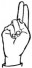 На ћирилици написано ЈЕСЕНКА ЛАПЧЕВИЋ састоји се из 15 слова [?]. Исписано ћириличном једноручном азбуком за глувонеме: